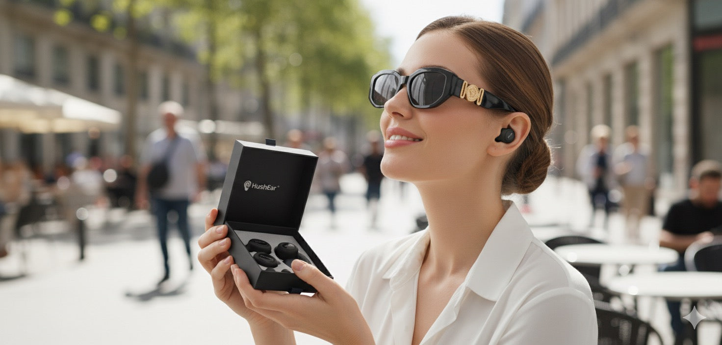 Hushear™ uses advanced noise-cancelling technology to block out distractions — from busy streets to airplane cabins — so you can focus on what really matters.